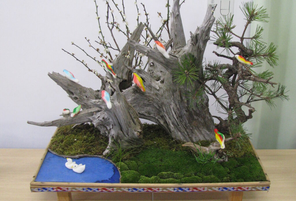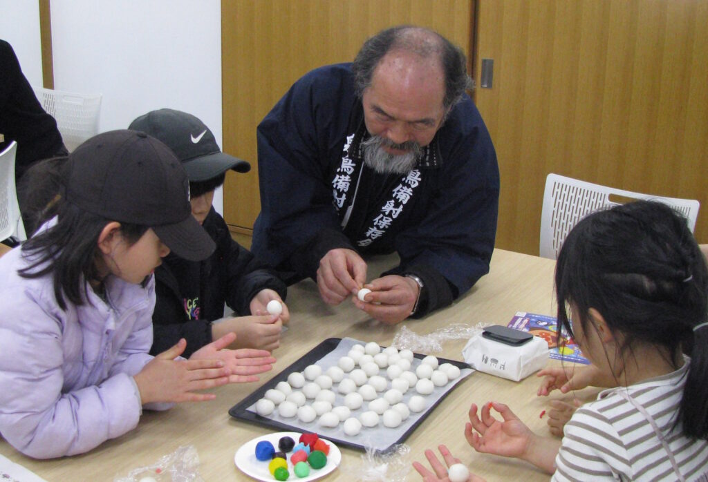 うるち米の米粉で作られた鳥を鳥木に飾ったり焼いて食べ、半紙に鬼や鳥の文字を書いた的を弓矢で射ます。